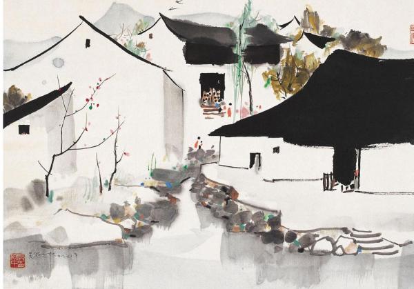 在滿足了基本需求后,孟浩凡才開始考慮,如何為這座古鎮(zhèn)保留傳統(tǒng)江南民居的神韻,又體現(xiàn)出現(xiàn)代學的美感和創(chuàng)意。他想到了畫家吳冠中。孟浩凡說,比起具象的元素,他更多考慮的是保留“氣質”?!氨热缯f你看這色調,色調是白墻綠瓦,中間有一些灰色系的這種磚,都是老色調的基底給我們的感覺。這種壓頂?shù)木€條,像吳冠中的畫,都是很抽象的嘛。畫江南民居,他畫出來很抽象的藝術畫,沒有具象的符號,但是你一看這個東西它就是江南的,因為屋頂?shù)倪@種曲線、線條,勾勒出了江南的這種俊秀?!?/p>