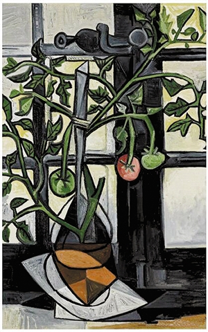 1944年夏天,畢加索與情人瑪麗·特雷斯生活在還處于納粹占領(lǐng)中的法國巴黎,有一天,他為家中窗臺上的番茄植物畫了一幅靜物,既反映了當(dāng)時食物緊缺、人們不得不自己種植農(nóng)產(chǎn)品的現(xiàn)實,同時還以富有生機的色彩和成熟果實的意向表達了人們強烈的意志力。那個時候,番茄是這座城市窗臺和陽臺上最常見的東西。