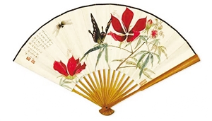董橋書房收藏的周煉霞《蝴蝶》設色紙本成扇。