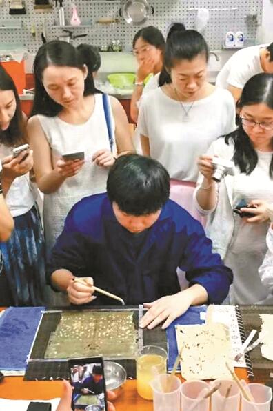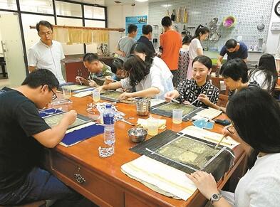 古籍修復(fù)技術(shù)班學(xué)員在學(xué)習(xí)修復(fù)技術(shù)。