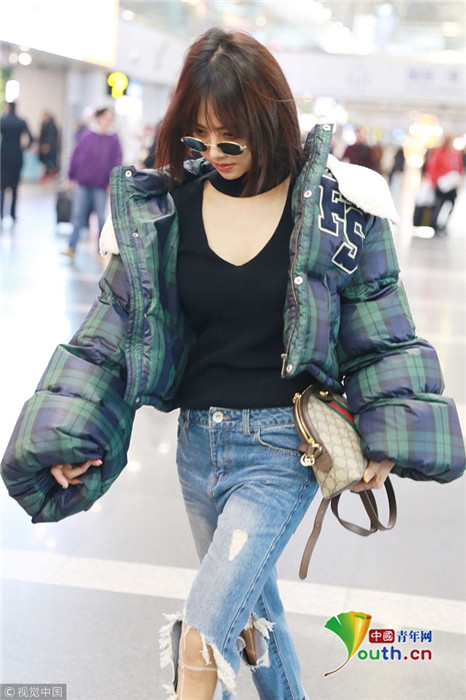 2017年12月8日,北京,蔡依林現(xiàn)身機場,她身穿夸張的格子羽絨服,袖子能藏雷成功擁有“麒麟臂” ,不知是不是在cos鐵臂阿童木。她身穿深V內(nèi)搭秀胸前春光,氣場全開似走秀,牛仔褲里似乎套著透明“秋褲”,凹造型不忘保暖!