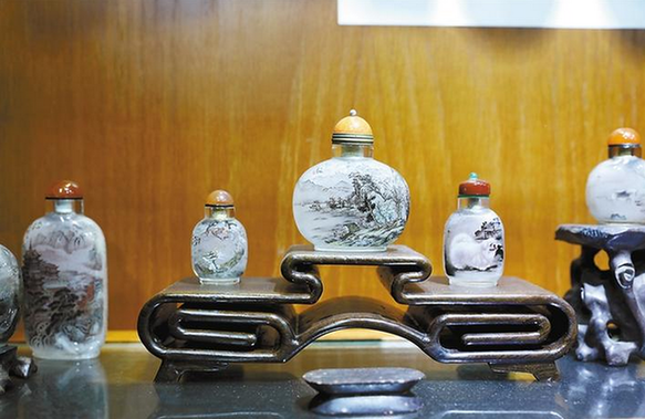 據(jù)楊藝介紹,明末清初,鼻煙作為貢品開始傳入我國,這些進貢的鼻煙用玻璃瓶盛裝,以防止其味道散失,并以瓶的大小標示鼻煙計量。王士禎在《晉祖筆記》中記載:“鼻煙以玻璃為瓶貯之。瓶之形象種種不一,顏色具紅黃紫白黑綠諸色,白如水晶,紅如火齊,極可愛玩,以象齒為匙,就象鼻之,遠納于瓶?!彼耐怀鲐暙I就在于,把紙上畫和寫的藝術(shù),經(jīng)過工具、操作等多方面的革新,改在為玻璃或水晶煙壺內(nèi)壁反面上作畫,其難、其奇,真可謂巧奪天工。內(nèi)畫煙壺的創(chuàng)作在光緒年間達到鼎盛。收藏界認為它集中國工藝美術(shù)之大成的袖珍藝術(shù),是詩書畫并茂的藝術(shù)精品。