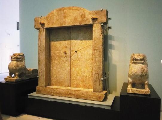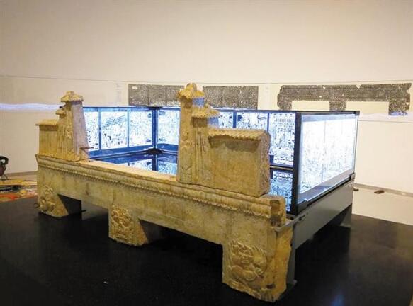 據(jù)吳強(qiáng)華介紹,“胡客翟門(mén)生”系列文物包括石門(mén)楣、石門(mén)檻、石門(mén)、石闕、石床、石枕、石屏風(fēng)等17件套(組),其上不僅刻畫(huà)了中西文化碰撞、交融背景下的人物、器物圖像;更為難得的是,其石屏風(fēng)正反兩面分別刻有儒家孝文化經(jīng)典中的郭巨、董永、董黯孝子傳圖,并有注明是“阮籍”、“(向秀)”榜題的“竹林七賢與榮啟期”八位高仕形象,體現(xiàn)了胡人在華夏文明的浸潤(rùn)中,價(jià)值觀(guān)與思想觀(guān)的轉(zhuǎn)向與認(rèn)同。
