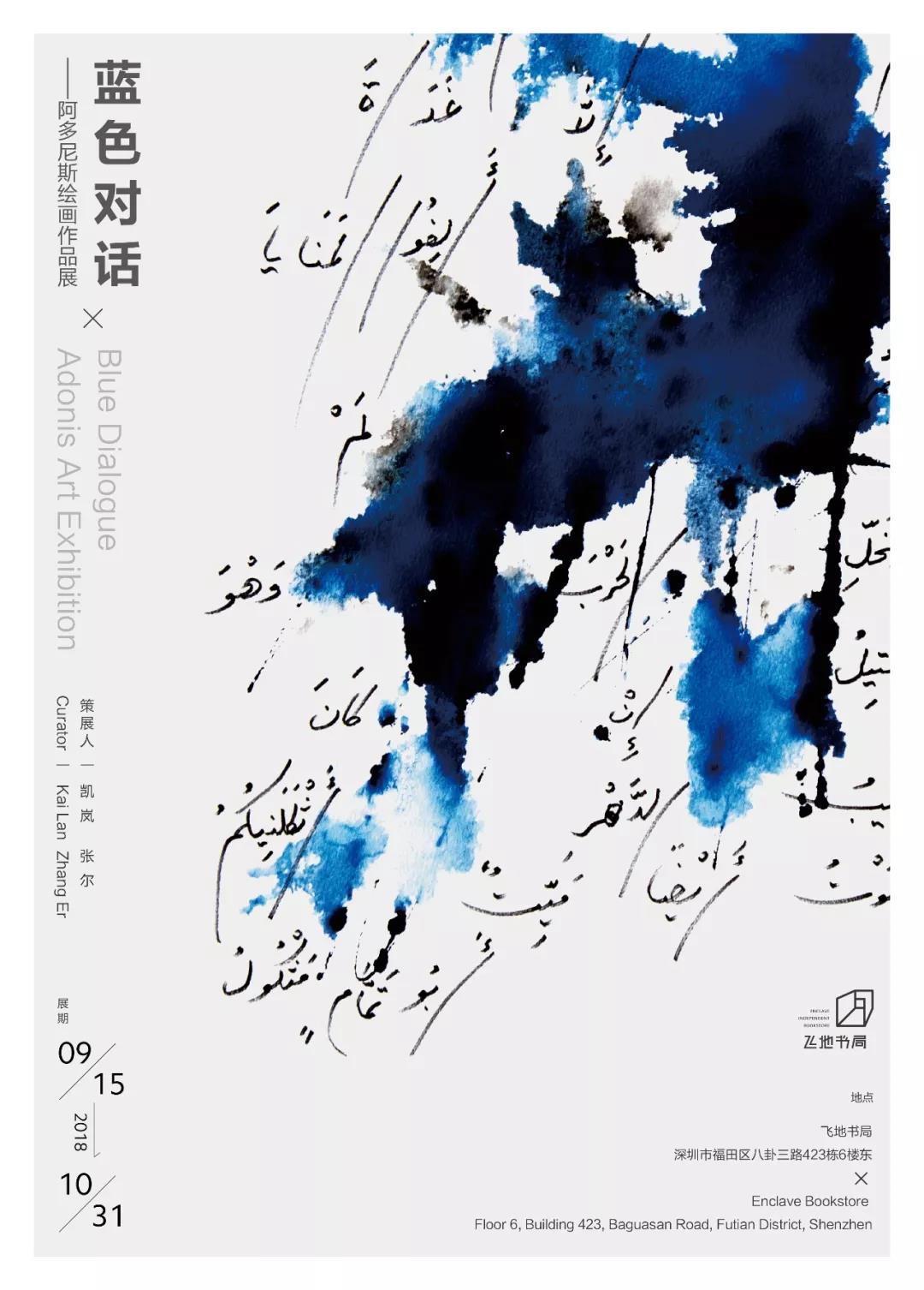 飛地書局將于9月15日至10月31日展出“藍(lán)色對話——阿多尼斯繪畫作品展”。展覽由凱嵐與張爾策劃,呈現(xiàn)詩人阿多尼斯五個系列的繪畫。