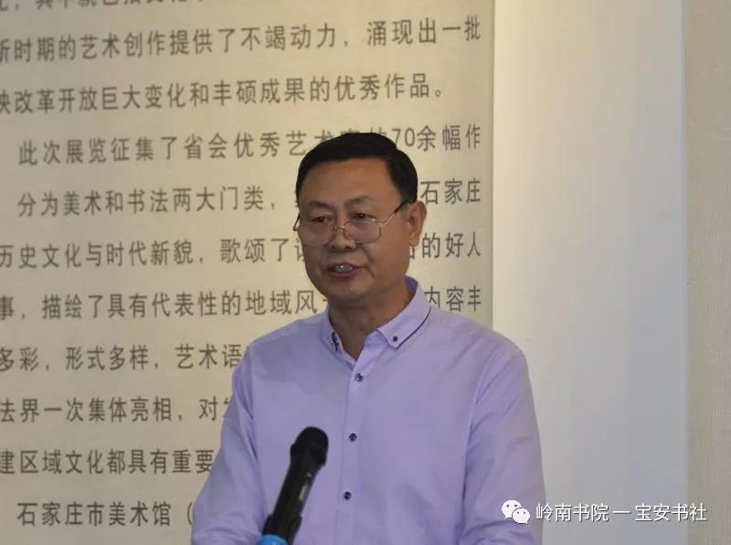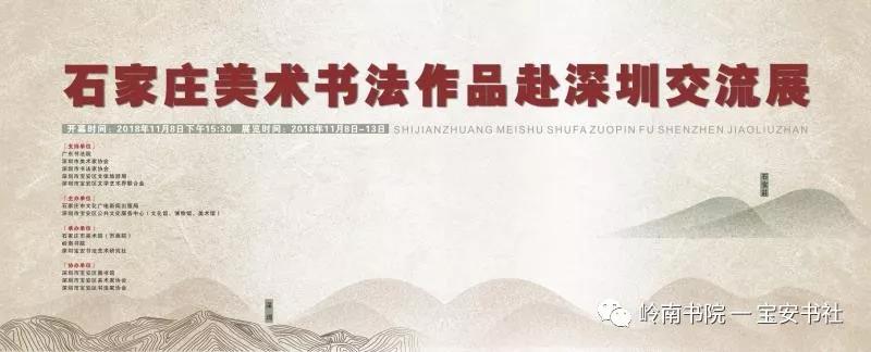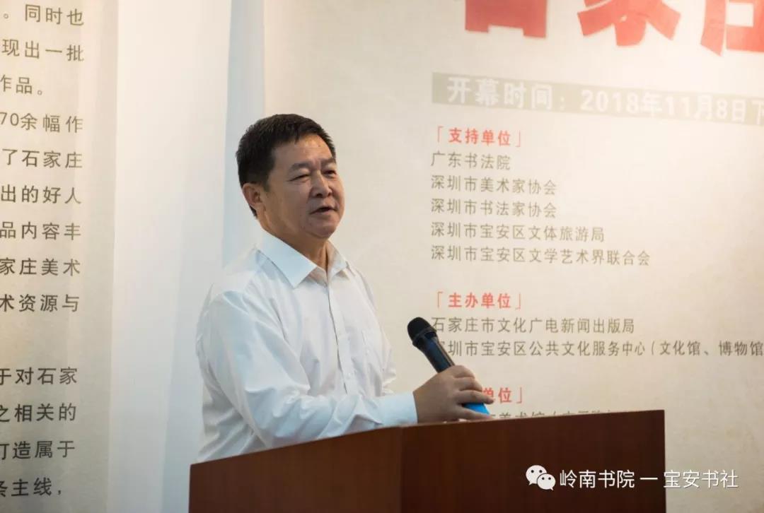 2018年11月8日下午15:00,由石家莊市文化廣電新聞出版局、深圳市寶安區(qū)公共文化服務(wù)中心(文化館、博物館、美術(shù)館)主辦,石家莊市美術(shù)館(市畫院)、嶺南書院、深圳寶安書法藝術(shù)研究社承辦,深圳市寶安區(qū)圖書館、寶安區(qū)美協(xié)、寶安區(qū)書協(xié)協(xié)辦并得到深圳市書法家協(xié)會、美術(shù)家協(xié)會、寶安區(qū)文體旅游局、寶安區(qū)文聯(lián)的大力支的 “ 石家莊美術(shù)書法作品赴深圳交流展 ” 在深圳市寶安區(qū)圖書館負(fù)一樓展廳隆重開幕——