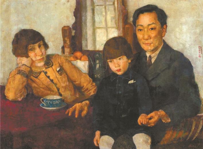 《楊仲子全家?!芬彩俏χ?,它以沉靜之態(tài)吸引觀眾駐足,忍不住與畫中人對(duì)視。這是徐悲鴻的佳作,畫的是好友楊仲子一家。楊仲子是中國(guó)最早留學(xué)歐洲研習(xí)西方音樂的先驅(qū),回國(guó)后傳授西方音樂,創(chuàng)建并推進(jìn)中國(guó)音樂教育教學(xué)體制,倡導(dǎo)改進(jìn)并推動(dòng)民族音樂發(fā)展。這件創(chuàng)作于1928年冬天的作品,徐悲鴻畫出了楊仲子和妻子、孩子閑適的狀態(tài)。畫中三人神態(tài)各異,在藝術(shù)家的傳情畫筆下,觀眾似能看到他們恬淡表情之后的情緒。