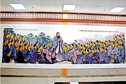 李祥自退休以來,堅持筆耕不止,以滿腔的熱情投入到中國文聯(lián)、國家財政部、文化部聯(lián)合實施的“中華文明歷史題材美術(shù)創(chuàng)作工程”的創(chuàng)作中,歷時8個春秋,成功塑造出孔子、司馬遷、王義之、李白、杜甫、蘇東坡、關(guān)漢卿、羅貫中、施耐庵、吳承恩、曹雪芹等11位對中華文明作出卓越貢獻的杰出歷史文化名人的光輝形象,再現(xiàn)先賢們的風(fēng)采。展出的10幅巨幅國畫作品為觀眾提供了學(xué)習(xí)、傳承中華民族優(yōu)秀傳統(tǒng)文化的形象性教材,讓大家在觀賞中重溫歷史,增強民族自豪感和愛國情懷,進一步堅定文化自信。