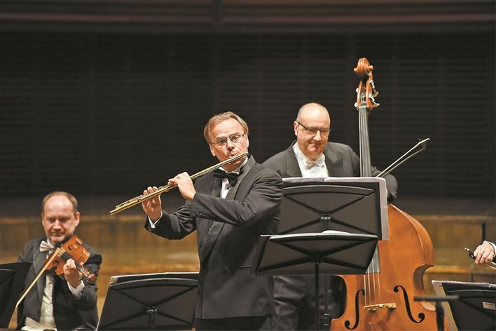 長(zhǎng)笛大師安德烈· 格里米內(nèi)利與意大利愛(ài)樂(lè)獨(dú)奏家室內(nèi)樂(lè)團(tuán)音樂(lè)會(huì)。 深圳特區(qū)報(bào)記者 胡蕾 攝