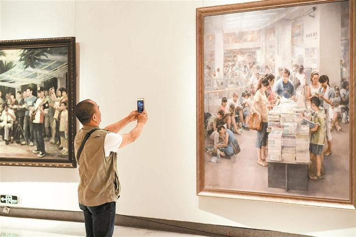 開窗便看見了美麗的風(fēng)景。開展當(dāng)天美術(shù)館剛一開門就吸引了不少市民前來觀看。他們懷著迫切的心情,第一時(shí)間趕來,一睹美術(shù)作品中的“深圳故事”。