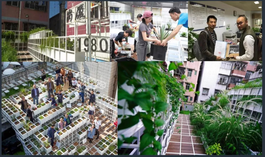 來自本地智慧的聯(lián)合創(chuàng)始人謝克非先生介紹說,作為城中村改造的實(shí)踐者,我們在做就是如何在這些矛盾中獲得共生。或者說,如何把所有矛盾點(diǎn)結(jié)合起來,讓城中村可以可持續(xù)地發(fā)展。所以在2018年3月聯(lián)合大自然保護(hù)協(xié)會(TNC)、桃花源生態(tài)保護(hù)基金會、深圳市城市規(guī)劃設(shè)計(jì)研究院、聯(lián)合公設(shè)發(fā)布了綠色天臺:愚公計(jì)劃2.0——崗廈1980海綿城市綠色屋頂示范項(xiàng)目。這個(gè)綠植天臺不僅是能夠美化環(huán)境,截存雨水、循環(huán)灌溉綠植等,更重要的是我們希望它作為一個(gè)平臺,把NGO的理念注入城中村,讓大家把對城中村的注意力從貧富懸殊、拆遷轉(zhuǎn)移到綠色環(huán)保,促進(jìn)可持續(xù)的發(fā)展。這里不僅是個(gè)景觀的平臺,更是內(nèi)容發(fā)動機(jī),能夠持續(xù)地產(chǎn)生更多的內(nèi)容。通過藝術(shù)、教育、公益等不同板塊的活動,以內(nèi)容的方式,把文化、環(huán)保、可持續(xù)發(fā)展等的信號不斷在這個(gè)點(diǎn)上發(fā)散出去,讓大家重新認(rèn)識城中村,從持續(xù)性的內(nèi)容信息實(shí)現(xiàn)社區(qū)營造,服務(wù)不同階層的人,讓更多人覺得環(huán)保、教育這件事情其實(shí)是非常有趣的,不生硬的,大家會主動繼續(xù)攜手服務(wù)社區(qū)。
