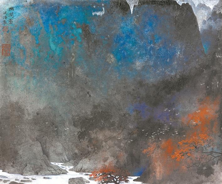 晚年,宋文治開(kāi)始了以潑彩法入畫(huà),在嚴(yán)謹(jǐn)?shù)姆ǘ戎腥谌肓嗽S多偶發(fā)性的生動(dòng)效果,畫(huà)面從此氤氳彌漫、色彩斑斕,其個(gè)人風(fēng)格亦發(fā)生了較大變化,使“宋家山水”的面貌進(jìn)一步得到確立。此次展覽共展出宋文治所創(chuàng)作的四十多件精品,這些作品主要展現(xiàn)宋文治藝術(shù)從“中年出新”到“老年求變”的創(chuàng)作軌跡及藝術(shù)面貌。