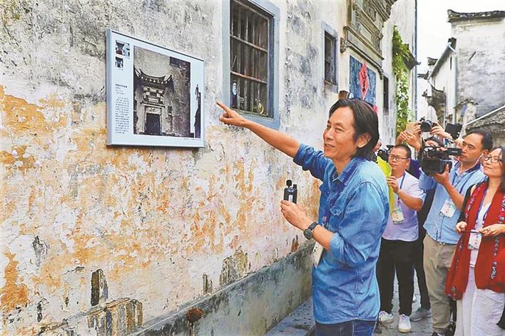 ▲2018年應(yīng)天齊帶領(lǐng)嘉賓在“應(yīng)天齊西遞村藝術(shù)館”觀摩畫(huà)展。
