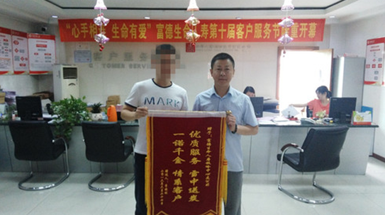 6月27日富德生命人壽鐵嶺中支迎來了一位特殊的客人,李先生的愛人雙手捧著“優(yōu)質(zhì)服務、雪中送炭,一諾千金、情系客戶” 的錦旗,非常激動的說:“多虧有富德生命保險,使我們本來不富裕的家庭,在有難的時候,讓我們的生活有了保障,讓我愛人的后續(xù)治療有了保障,還是保險好?!?/p>