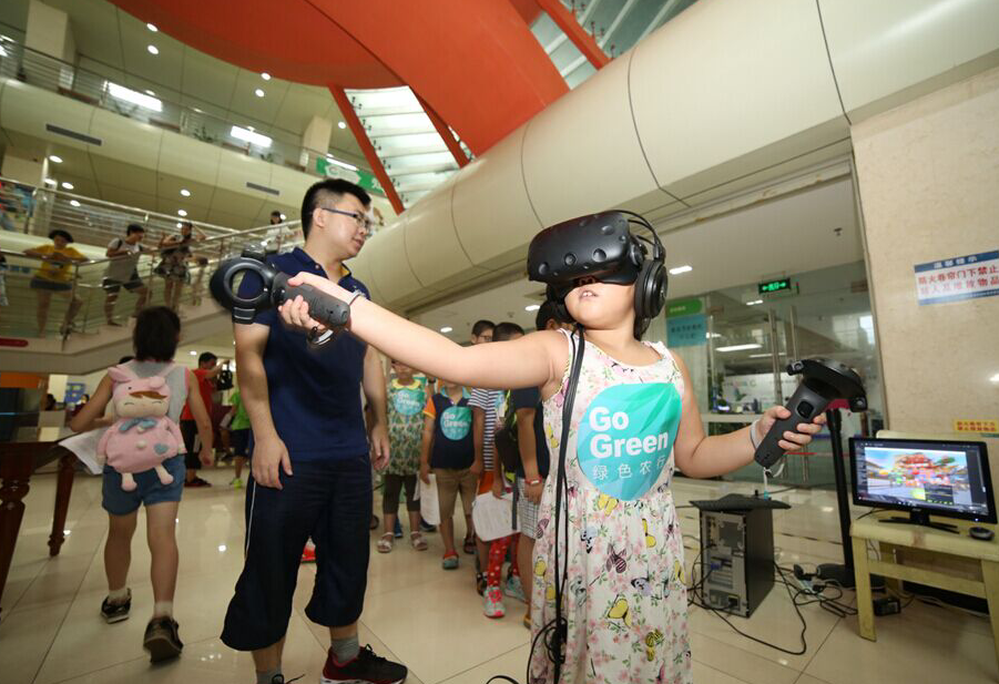 在現(xiàn)場(chǎng),記者看到VR體驗(yàn)區(qū)前早已排起了長(zhǎng)隊(duì)。而當(dāng)看到屏幕里的真實(shí)場(chǎng)景時(shí),小朋友對(duì)高科技的好奇心瞬間被激起。當(dāng)帶上設(shè)備,看到神奇的海底世界時(shí),小朋友們更是直呼神奇!“都不敢眨眼睛,大鯨魚(yú)就像真的一樣在我頭頂游過(guò)去?!?作為一個(gè)科技迷,10歲的小亮剛體驗(yàn)完,又馬上到隊(duì)伍后面排隊(duì)準(zhǔn)備再玩一次?!伴_(kāi)始不太會(huì)玩,不會(huì)用手柄,后來(lái)越玩越有意思,很過(guò)癮?!毙×粮嬖V記者,以前只是聽(tīng)說(shuō)過(guò)VR,今天終于見(jiàn)到了,很逼真,很好玩,今天來(lái)參加這個(gè)活動(dòng)真是賺到了。