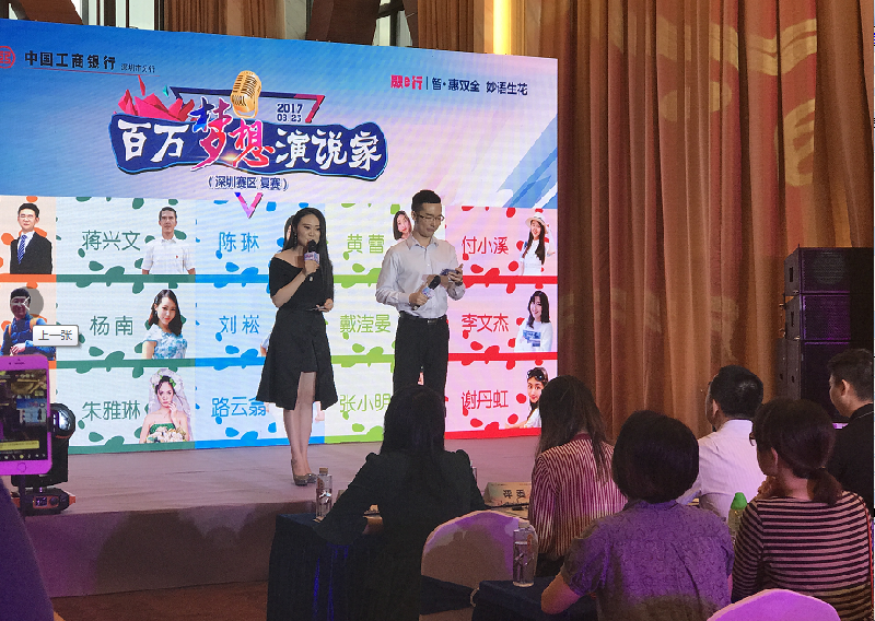 作為工行融e行(手機銀行)品牌營銷活動,“百萬夢想演說家”可謂是聲勢浩大?;顒影l(fā)動了工行所有員工進(jìn)行海選。此次復(fù)賽則在全國八大賽區(qū)分別進(jìn)行,其中華南地區(qū)采取線下復(fù)賽方式,從廣東(不含深圳)、廣西、海南、廈門、深圳五大分區(qū)甄選了15位夢想達(dá)人在深圳賽區(qū)進(jìn)行同臺PK。