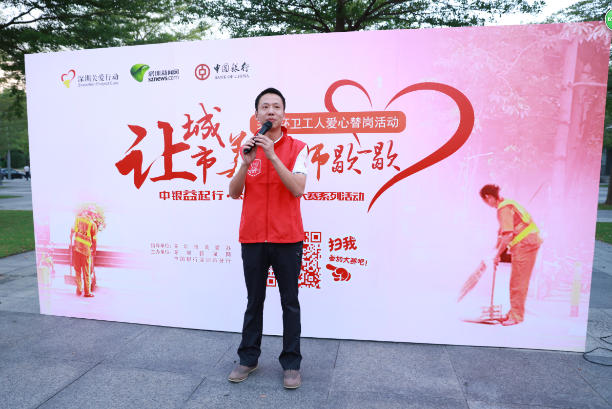 活動當天,市城市管理局科長張晨曦也親臨現(xiàn)場,他表示,“愛心替崗”旨在倡導(dǎo)和組織社會公益組織、愛心企業(yè)、熱心人士等,通過提供服務(wù)、贈予物資、精神激勵等方式,以力所能及、溫暖貼心的方式關(guān)愛和支持環(huán)衛(wèi)工人,廣泛開展為環(huán)衛(wèi)工人送溫暖活動,倡導(dǎo)全社會講衛(wèi)生、愛環(huán)境,身體力行垃圾不落地、垃圾分類減量的綠色生活方式,為美麗深圳建設(shè)再添亮點。