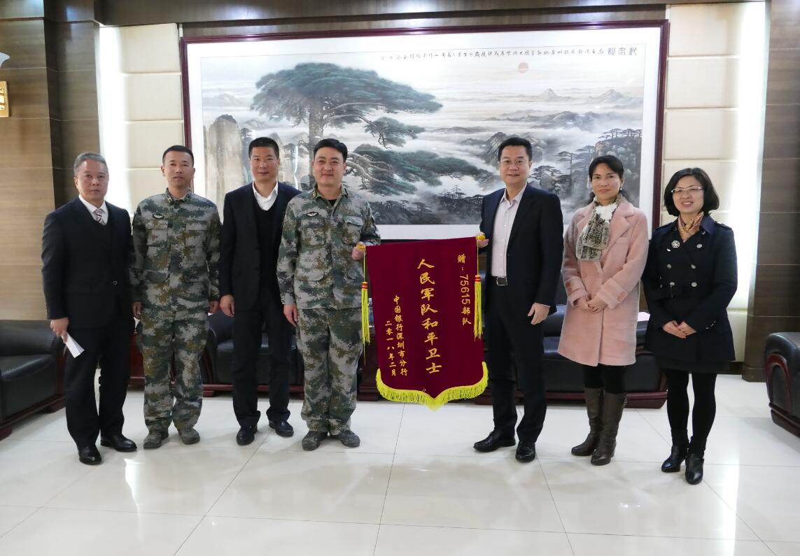 黨的十九大精神和新時代黨的強軍思想,成為全軍新氣象。與新時代精神綱領(lǐng)一脈相承,為發(fā)揮軍政軍民團(tuán)結(jié)這一政治優(yōu)勢,弘揚軍愛民、民擁軍的光榮傳統(tǒng),同時積極響應(yīng)2018深圳市新春關(guān)愛行動,2月7日上午,深圳中行聯(lián)合深圳市關(guān)愛辦赴駐港部隊深圳教導(dǎo)團(tuán)開展“承襲擁軍傳統(tǒng)、共敘魚水深情”主題新春慰問暨黨建學(xué)習(xí)進(jìn)軍營系列活動,以實際行動踐行愛心優(yōu)良傳統(tǒng),表達(dá)對軍人的關(guān)切問候和崇高致意。