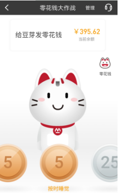 作為存錢罐,“小招喵”萌萌的外形招人喜歡,而當(dāng)把智能小屏幕放入表帶,它又變身真正的兒童手表時(shí)刻陪伴孩子。家長登錄招商銀行APP“零花錢大作戰(zhàn)”功能,綁定小孩的銀行卡和儲(chǔ)蓄罐后,動(dòng)動(dòng)手指就能給孩子“發(fā)送”零花錢,與孩子實(shí)時(shí)互動(dòng),整個(gè)零花錢發(fā)送體驗(yàn)非常有趣。家長還可以和孩子做“約定”,當(dāng)孩子完成某項(xiàng)約定任務(wù),進(jìn)行轉(zhuǎn)賬。而小朋友可以在自己的“小招喵”存錢罐上,可以看到零花錢金幣落下過程,還可以通過存錢罐去查詢零花錢余額。