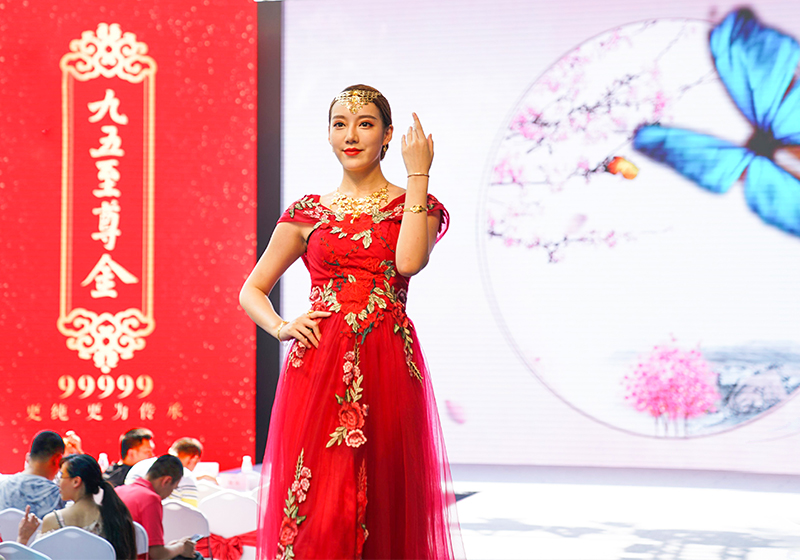 黃金文化與中國(guó)傳統(tǒng)婚慶文化淵源久遠(yuǎn),從古自今,黃金有情比金堅(jiān)之意,有滿滿的喜慶之感,在嫁娶之時(shí)通常作為聘禮中的重頭戲。結(jié)婚三金通常指的是項(xiàng)鏈、手鐲、戒指,寓意夫妻情比金堅(jiān),一生一世永相隨之意,因此這美好的寄愿習(xí)俗一直被傳承至今。黃金又是財(cái)富、身份的象征,結(jié)婚佩戴黃金首飾,彰顯家族的財(cái)富、地位與榮譽(yù),飽含家族人濃郁的情感與欣喜,可代代傳承!九五至尊金至囍新娘演繹的中華黃金婚慶文化,唯美唯俏,牽動(dòng)著每個(gè)人的心,掀起了中華黃金婚慶文化的熱潮。