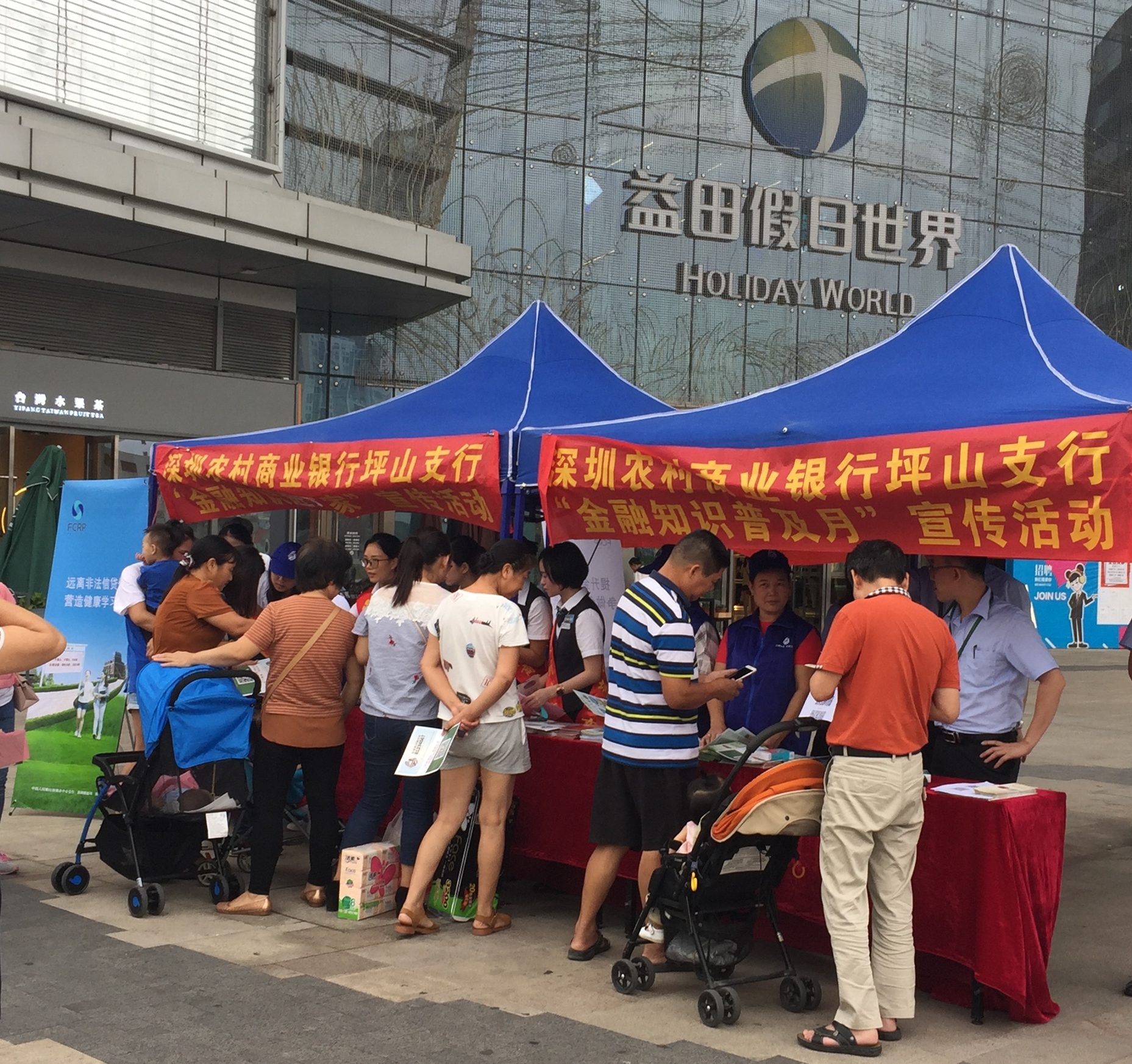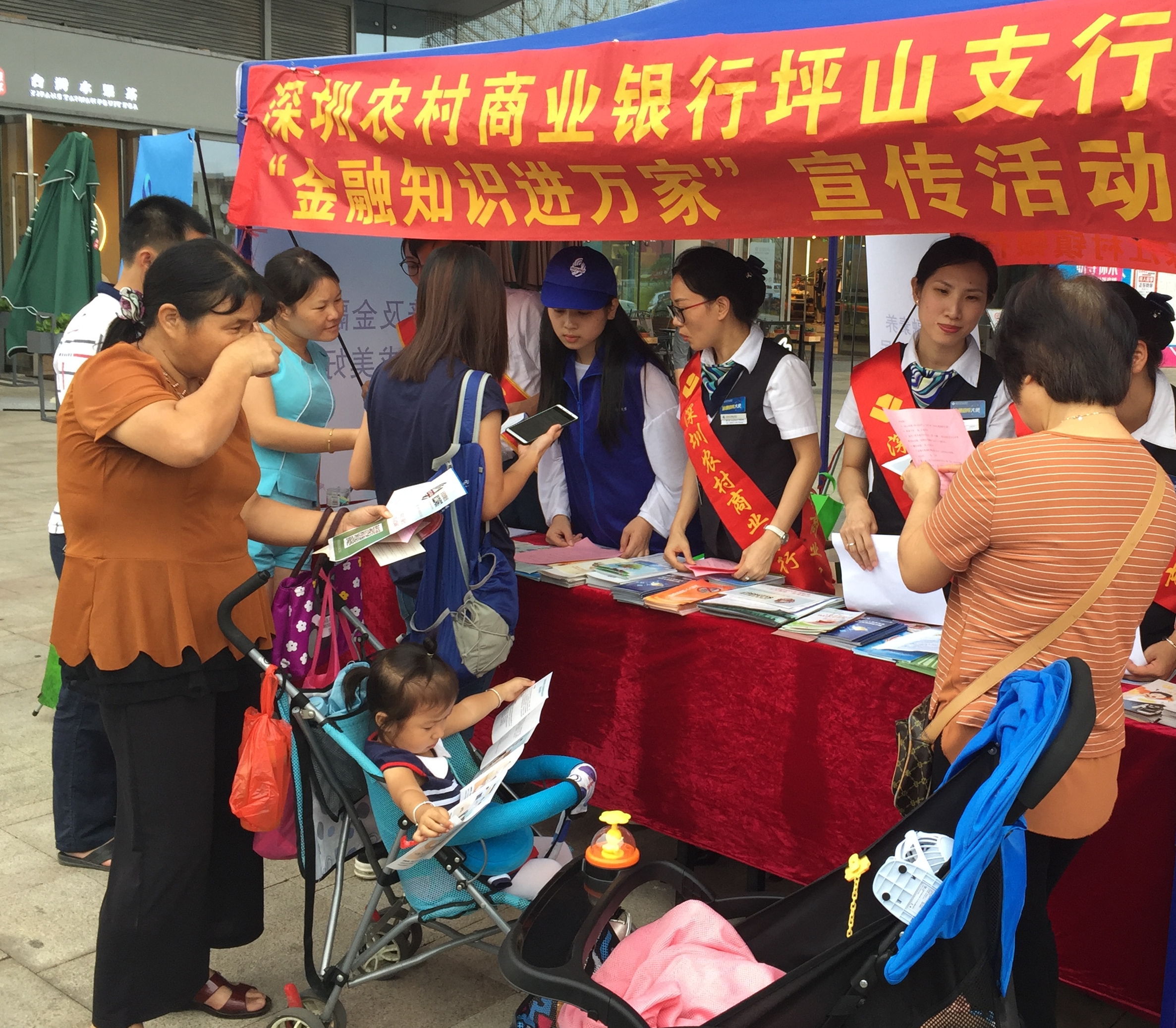 為進(jìn)一步推動金融知識的廣泛傳播,9月28日,深圳農(nóng)村商業(yè)銀行攜同光大銀行、郵政儲蓄銀行、坪山珠江村鎮(zhèn)銀行在坪山區(qū)大型商場“益田假日世界廣場”舉行“金融知識宣傳活動”?;顒蝇F(xiàn)場來咨詢的市民絡(luò)繹不絕,很多聽完講解的市民都對這種貼心的宣傳服務(wù)譽(yù)不絕口。