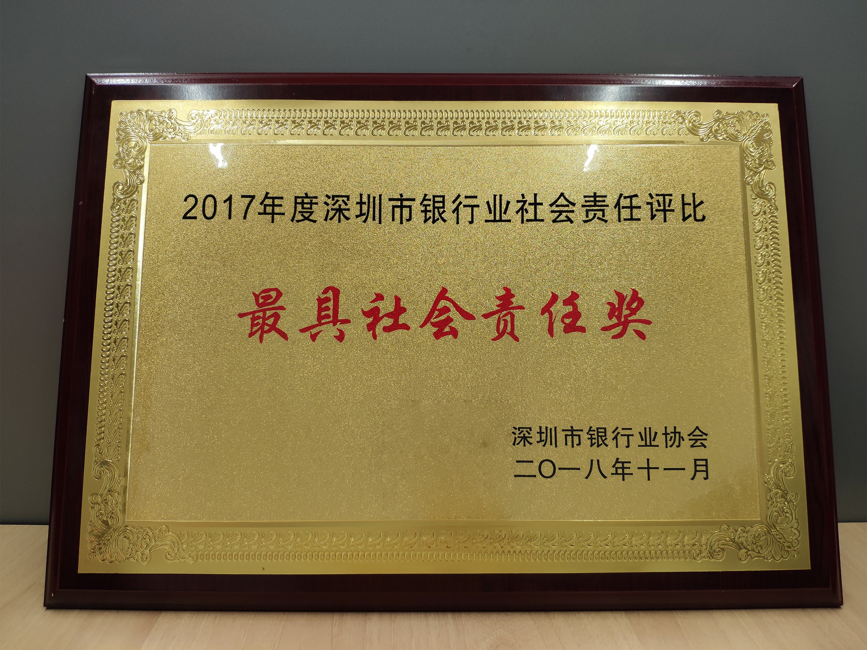 在深圳市銀行業(yè)協(xié)會主辦的2017年度深圳市銀行業(yè)社會責(zé)任評比活動中,華夏銀行深圳分行在20余家參評金融機構(gòu)中脫穎而出,榮獲深圳銀行業(yè)“最具社會責(zé)任獎”。