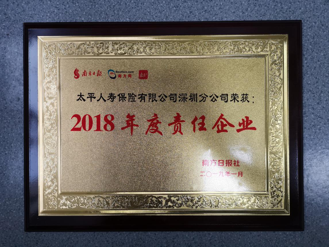 深圳新聞網(wǎng)訊 1月14日,由南方報(bào)業(yè)傳媒集團(tuán)主辦,深圳市慈善事業(yè)聯(lián)合會(huì)、深圳市慈善會(huì)、深圳市社會(huì)公益基金會(huì)、同心俱樂(lè)部、深圳市保險(xiǎn)同業(yè)公會(huì)聯(lián)合主辦,南方日?qǐng)?bào)珠三角全媒體新聞部承辦的2019南方日?qǐng)?bào)深圳企業(yè)社會(huì)責(zé)任峰會(huì)在深圳召開(kāi)。太平人壽深圳分公司從百余家企業(yè)中脫穎而出,榮獲“2018年度責(zé)任企業(yè)”榮譽(yù)獎(jiǎng)項(xiàng)。
