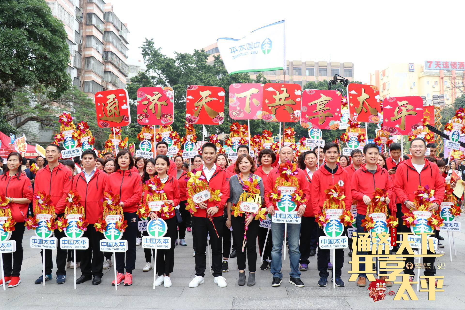 當(dāng)日下午,在佛山市領(lǐng)導(dǎo)宣布活動啟動后,太平人壽佛山分公司、太平財險佛山中心支公司、太平養(yǎng)老佛山中心支公司等50名代表組成企業(yè)方陣團(tuán),與市內(nèi)慈善先進(jìn)人物、市直機關(guān)人員代表、愛心公益組織、市民代表等12個方陣上萬人組成浩浩蕩蕩的隊伍,從佛山市政府出發(fā),一手拿著金燦燦的風(fēng)車和宣傳標(biāo)語牌,一邊熱情高呼“通濟天下·共享太平”的宣傳口號通過通濟橋,向市民展現(xiàn)中國太平良好的精神風(fēng)貌,引來兩邊路人的駐足關(guān)注。根據(jù)官方數(shù)據(jù)顯示,當(dāng)天共計79.52萬人參與行通濟。