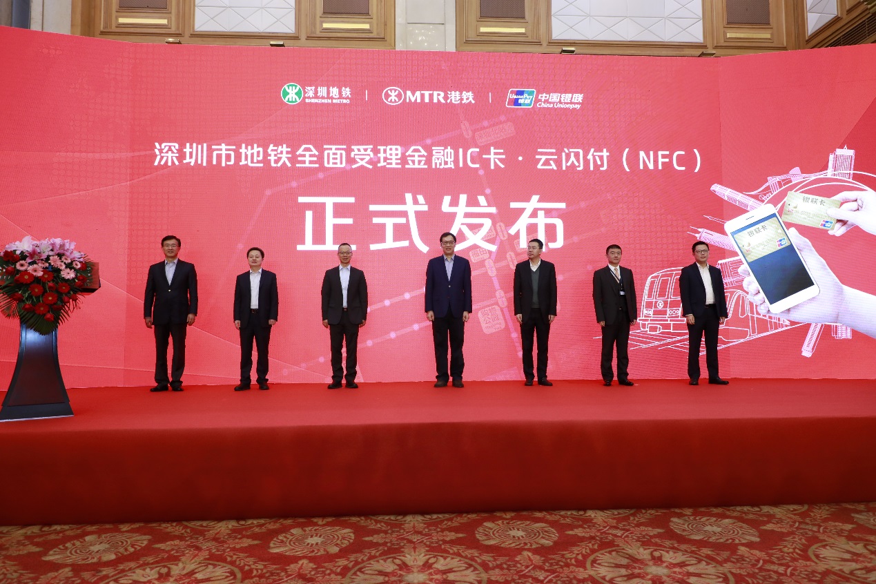 3月1日上午,五洲賓館內(nèi)舉行了“深圳市地鐵金融IC卡過閘服務(wù)”的啟動(dòng)儀式。中國(guó)人民銀行副行長(zhǎng)范一飛、深圳市人民政府副市長(zhǎng)艾學(xué)峰、招商銀行總行副行長(zhǎng)劉建軍、中國(guó)銀聯(lián)董事長(zhǎng)邵伏軍、招商銀行深圳分行行長(zhǎng)岳鷹、深圳地鐵董事長(zhǎng)辛杰、港鐵(深圳)總經(jīng)理黃琨暐等相關(guān)領(lǐng)導(dǎo)出席了啟動(dòng)儀式,并共同點(diǎn)亮LED燈幕,宣告深圳市地鐵8條線路的所有車站正式啟用過閘功能。