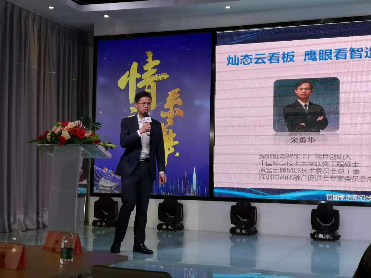 燦態(tài)信息總經(jīng)理宋勇華是原富士康集團MES技術(shù)委員會總干事,他以18年富士康智能制造系統(tǒng)實踐經(jīng)驗、100多個工廠信息化智能項目沉淀工作經(jīng)歷介紹了面向中小企業(yè)的智能制造落地方案。其解決方案依據(jù)他原創(chuàng)的三屏看智造理念,即“燦態(tài)鷹眼云看板” SaaS產(chǎn)品,打造符合企業(yè)發(fā)展實際需要和高性價比的智能化平臺,助力中小企業(yè)智能化務實落地。