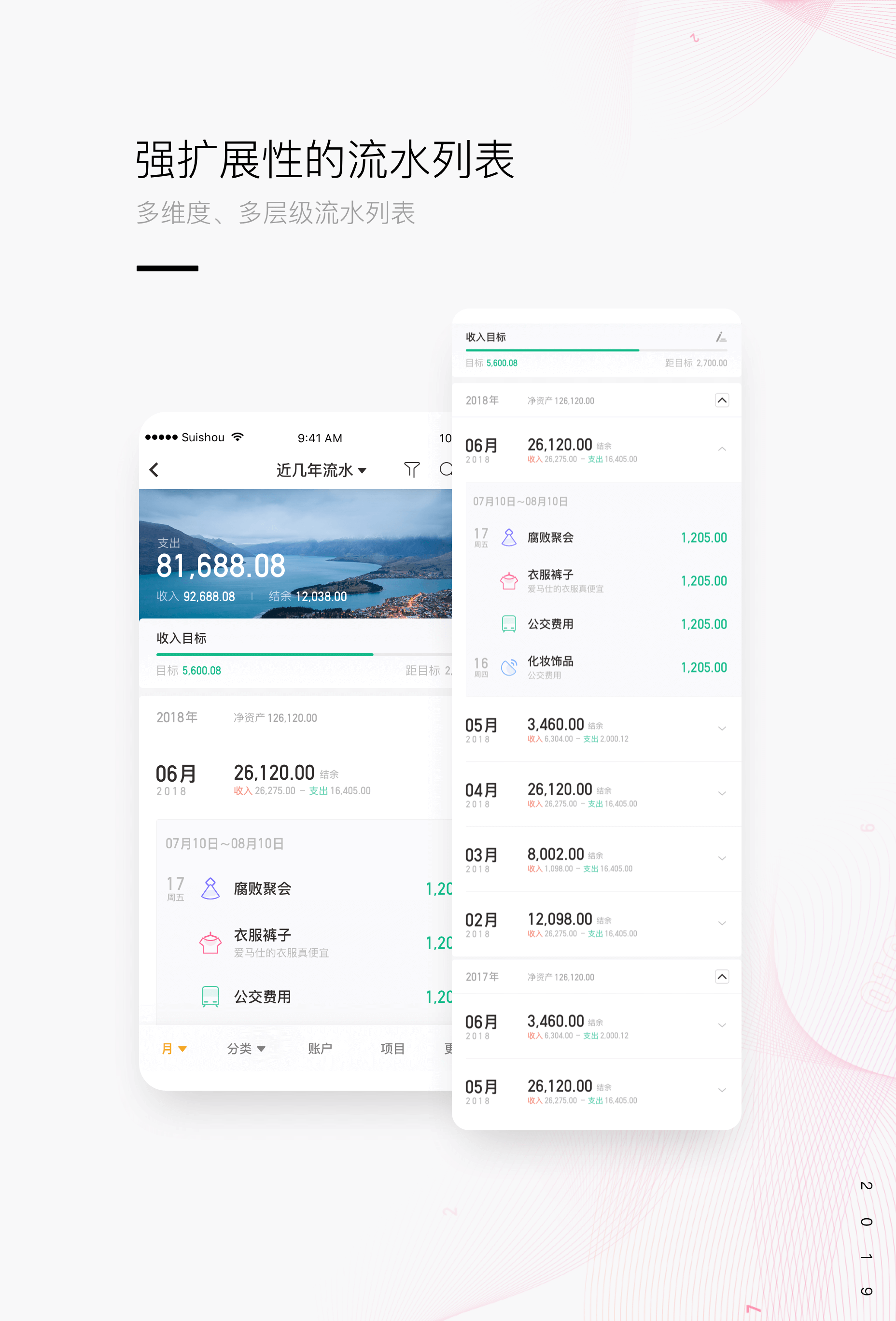 新版本還優(yōu)化了流水列表結構,凸顯層級區(qū)分,使內(nèi)容條目更清晰,向用戶呈現(xiàn)了更加直觀清楚的財務信息,方便用戶隨時掌握自己的財務狀況。