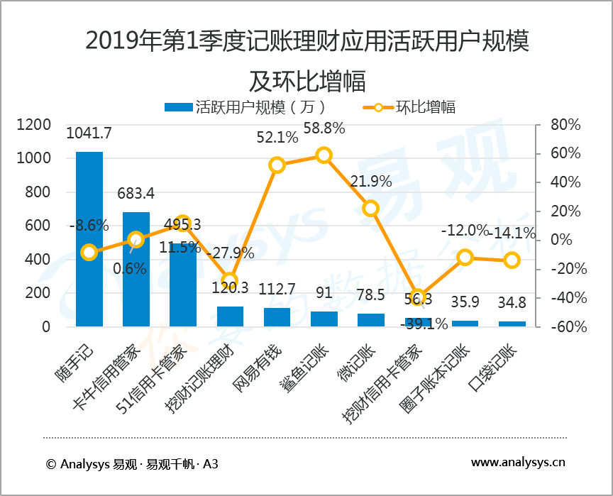 5月24日,知名互聯(lián)網(wǎng)數(shù)據(jù)研究機(jī)構(gòu)易觀 Analysys發(fā)布了2019年第1季度記賬理財行業(yè)報告,數(shù)據(jù)顯示,2019年第1季度,在國內(nèi)記賬類應(yīng)用中,隨手記以1041.7萬活躍用戶規(guī)模蟬聯(lián)榜首,卡牛信用管家和51信用卡管家分別以683.4萬和495.3萬活躍用戶規(guī)模居行業(yè)二、三位。
