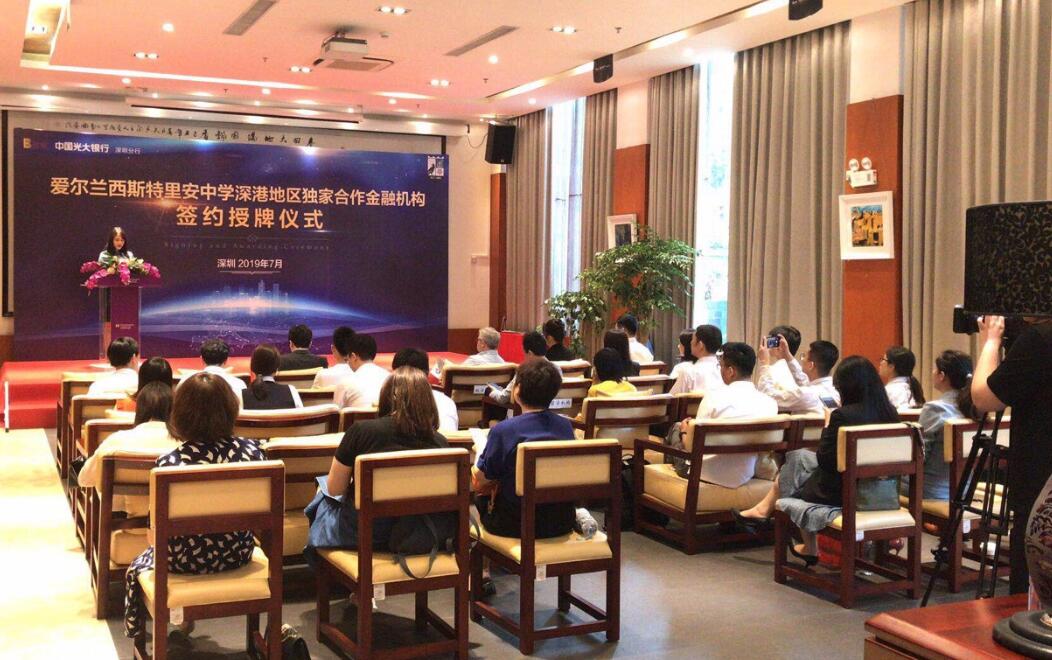 中國光大銀行深圳分行與愛爾蘭頂級私立男校簽署獨家合作授牌儀式現(xiàn)場