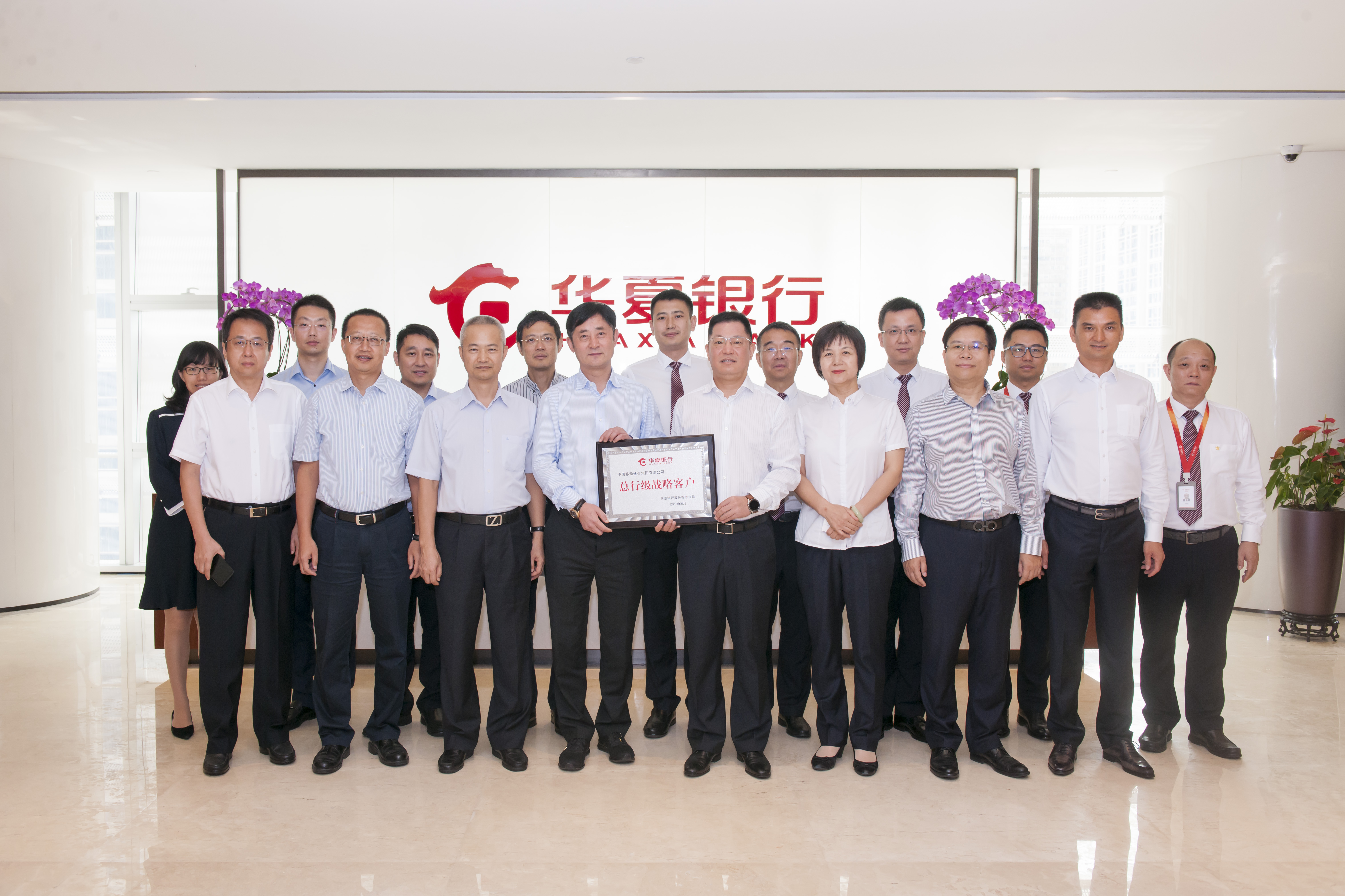 簽約儀式前,華夏銀行深圳分行受總行委托向中國移動通信集團有限公司頒發(fā)“總行級戰(zhàn)略客戶”牌匾。