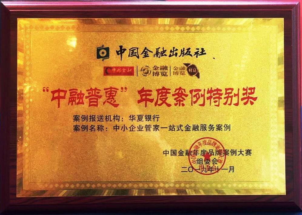 深圳新聞網(wǎng)12月11日訊 2019年11月,在“第二屆(2019)中國(guó)金融年度品牌案例大賽”上,華夏銀行獲得“中融普惠”年度案例特別獎(jiǎng)。