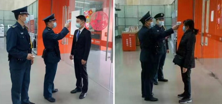 網(wǎng)點(diǎn)服務(wù)人員對進(jìn)入營業(yè)網(wǎng)點(diǎn)的人員做好體溫測量,對于上門辦理業(yè)務(wù)的客戶,引導(dǎo)客戶佩戴口罩,鼓勵客戶使用自助機(jī)具或線上金融服務(wù),每日定時對填單臺、簽字筆等客戶頻繁接觸部位進(jìn)行消毒,保障客戶身體健康。