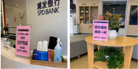2月10日,在接到浦發(fā)深圳分行統(tǒng)一部署的復(fù)工安排后,科苑支行落實(shí)網(wǎng)點(diǎn)廳堂的各項(xiàng)防疫措施和人員復(fù)工的安全措施,在確保員工和客戶健康安全的前提下,全力保障各項(xiàng)金融服務(wù)需求。走進(jìn)浦發(fā),可以看到廳堂多處區(qū)域配備了口罩、消毒液、一次性手套等防控物資,在廳堂顯眼處設(shè)計(jì)擺放了“因?yàn)閻?ài)你,離你一米”等暖心提示。其中,黨員同志們帶頭在廳堂進(jìn)行宣傳指引,協(xié)助做好防護(hù)措施。