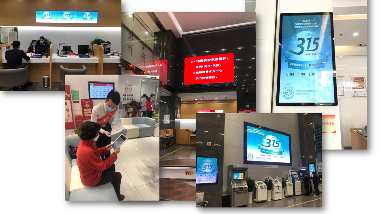 受疫情影響,在今年的3.15宣傳教育活動(dòng)期間,招商銀行深圳分行因時(shí)制宜,充分借助互聯(lián)網(wǎng)媒體渠道,加大線上宣教推廣力度。其中,原創(chuàng)漫畫、視頻等已在中國銀行業(yè)協(xié)會(huì)、中國人民銀行深圳市中心支行、招商銀行總行以及信用卡中心的官方微信、微博等各大平臺(tái)競相上線,獲得了消費(fèi)者的廣泛好評(píng)。同時(shí),在手機(jī)銀行 App網(wǎng)點(diǎn)線上店開辟“消保有招”3.15專欄,不斷開創(chuàng)新的宣傳場景和消費(fèi)者觸點(diǎn)。結(jié)合電臺(tái)廣播交通頻率1062、新聞898、音樂971等傳統(tǒng)媒體平臺(tái)在早晚高峰期循環(huán)播放活動(dòng)主題,以短平快、覆蓋廣的方式大力推動(dòng)金融宣教工作,進(jìn)一步擴(kuò)充宣傳渠道和受眾面。同時(shí),以營業(yè)廳為陣地,通過跑屏、電子海報(bào)機(jī)、電視等多媒體設(shè)備播放宣傳素材,多種渠道共同推廣打造立體宣教格局,覆蓋更多消費(fèi)者群體進(jìn)一步增強(qiáng)影響力。