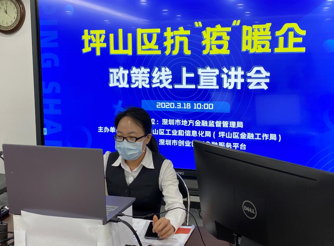為充分支持坪山區(qū)內(nèi)企業(yè)抗擊疫情和復工復產(chǎn),攜手企業(yè)共渡難關,2020年3月18日上午,深圳農(nóng)商行坪山支行通過“線上宣講”方式參加了由坪山區(qū)工業(yè)和信息化局聯(lián)合開展的抗“疫”暖企政策宣講和銀企對接系列活動。活動中,深圳農(nóng)商行坪山支行為區(qū)內(nèi)100多家企業(yè)詳細介紹該行在抗疫期間推出的“抗疫周轉貸”、“抗疫訂單貸”、“抗疫醫(yī)療貸”等專屬產(chǎn)品,同時也為企業(yè)推薦了“速抵貸”、“速易貸”、“稅e貸”、“通發(fā)貸”等特色產(chǎn)品。