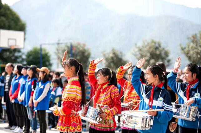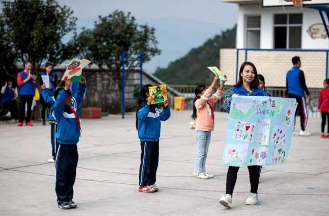 圍繞運動會,志愿者帶領(lǐng)孩子做了各種準(zhǔn)備。體育科班出身的志愿者,為孩子們帶來了足球、籃球和排球課。雖然上課的時間不長,可孩子們對這些運動表現(xiàn)出極大的熱情?;@球架下站滿了個子高矮不一的學(xué)生,山間的空地成為足球場,拋扔排球成為新的運動項目。音樂老師為學(xué)校組織了第一支小樂隊,美術(shù)老師教孩子們畫出了他們心目的亞運會……每一個孩子都自信地做特長展示。