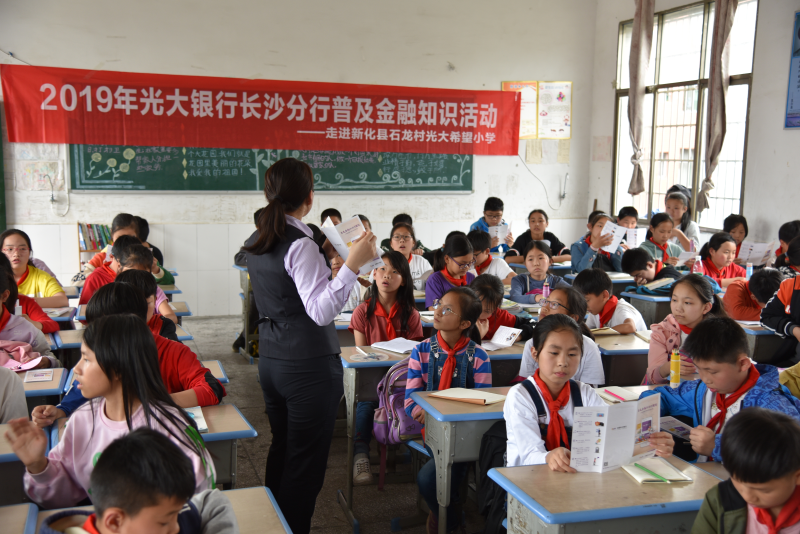 此外,近年來長(zhǎng)沙分行還積極開展“小小銀行家”送金融知識(shí)與關(guān)懷慰問進(jìn)山區(qū)活動(dòng),定期走進(jìn)新化縣石龍村光大希望小學(xué)、新田縣苦志育才學(xué)校,為師生們普及金融知識(shí),讓金融知識(shí)和服務(wù)在貧困山區(qū)依然能開花結(jié)果。