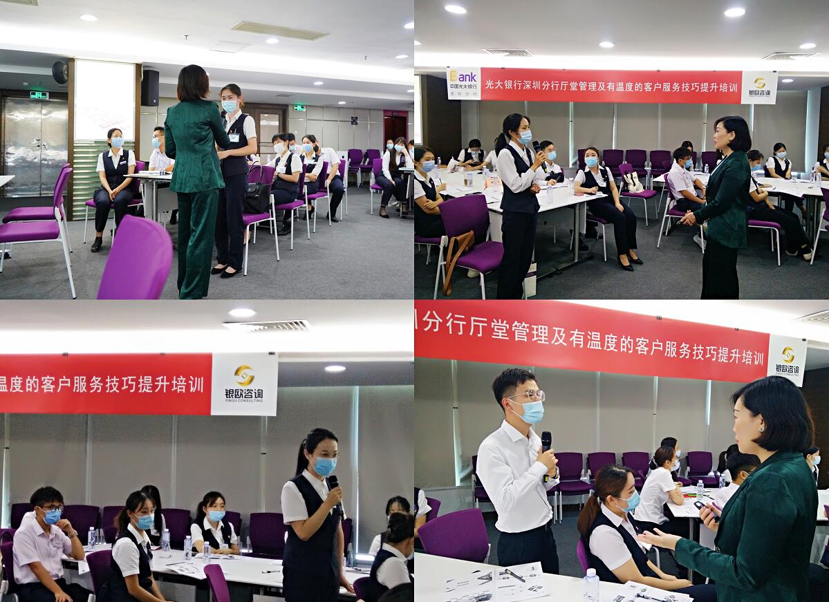 深圳新聞網(wǎng)·見(jiàn)圳客戶端2021年5月27日訊 今日,光大銀行深圳分行成功舉辦“廳堂管理及有溫度的客戶服務(wù)技巧提升”第一期專題培訓(xùn),各支行大堂經(jīng)理及大堂助理共50余人參加培訓(xùn)。培訓(xùn)強(qiáng)化了員工對(duì)大堂崗位的認(rèn)識(shí)和理解,進(jìn)一步提升了廳堂人員服務(wù)工作意識(shí)與質(zhì)量,是深圳分行陽(yáng)光服務(wù)工作邁入新階段的一個(gè)里程碑。