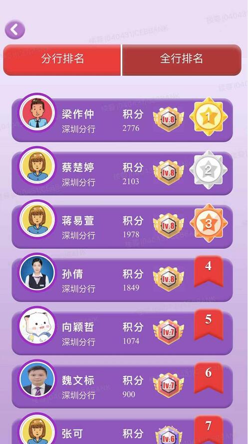 此次活動取得良好效果,有效提高員工消費者權(quán)益保護意識與能力。滄海橫流顯砥柱,萬山磅礴看主峰。深圳分行熙龍灣支行梁作仲、海濱支行蔡楚婷、華強支行蔣易萱、寶城支行孫倩、陽光服務(wù)(消保)辦公室向穎哲、民塘支行魏文標(biāo)、寶城支行張可、華強支行蔡靜嫻、寶新支行郭曉冀、民塘支行彭慧妮的最終比賽戰(zhàn)績排名分行前十位置。分行陽光服務(wù)(消保)辦公室、零售金融部、民塘支行、南海大道支行、寶新支行、八卦嶺支行、筍崗支行、水貝支行、南灣支行、羅湖支行、布吉支行、福田支行、中心區(qū)支行實現(xiàn)全員參與比賽,表現(xiàn)也十分突出。