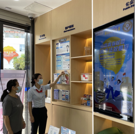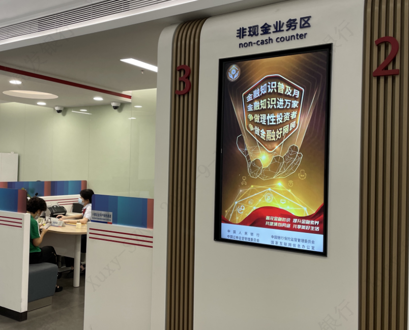 在網(wǎng)點營業(yè)大廳內(nèi),電子屏中的2021年金融知識普及月海報營造了良好宣傳氛圍。金融之手,強而有力,各營業(yè)網(wǎng)點一手承接了金融知識普及多方面的內(nèi)容,共同構(gòu)建了線上線下、電信、網(wǎng)絡(luò)等多渠道傳播的金融知識普及傳播網(wǎng),有力推進(jìn),勢在必行。