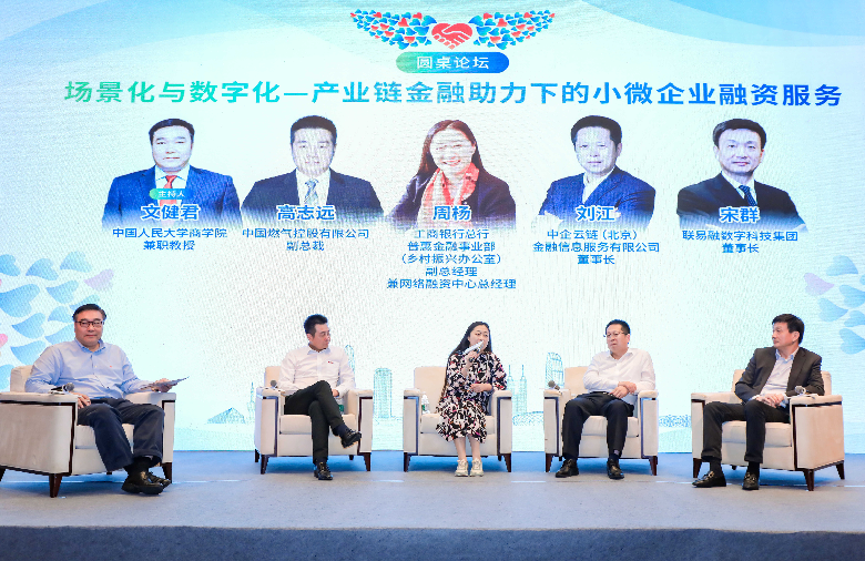 在論壇對(duì)話(huà)環(huán)節(jié),工行總行普惠金融事業(yè)部副總經(jīng)理兼網(wǎng)絡(luò)融資中心總經(jīng)理周楊、核心企業(yè)代表中國(guó)燃?xì)饪毓捎邢薰靖笨偛酶咧具h(yuǎn)、供應(yīng)鏈服務(wù)機(jī)構(gòu)代表中企云鏈(北京)金融信息服務(wù)有限公司董事長(zhǎng)劉江和聯(lián)易融數(shù)字科技集團(tuán)董事長(zhǎng)宋群共同探討了如何以融合和創(chuàng)新方式,通過(guò)產(chǎn)業(yè)鏈金融助力小微企業(yè)融資服務(wù),互相交換在產(chǎn)業(yè)鏈金融發(fā)展方面的經(jīng)驗(yàn)和智慧。