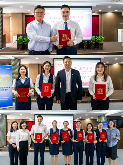 分行黨委委員、副行長宋綱、黨委委員劉晨鵬及參會的對公條線各部門負責人分別向優(yōu)秀獲獎?wù)哳C獎。