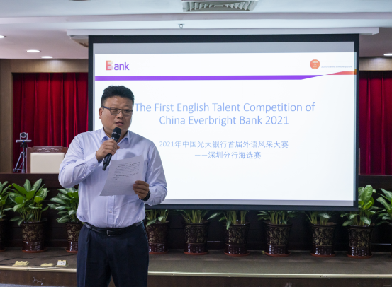據(jù)了解,自總行下發(fā)《關(guān)于舉辦2021年中國光大銀行首屆外語風采大賽的通知》后,光大銀行深圳分行黨委高度重視,由交易銀行部聯(lián)合工會牽頭主辦,分行公司業(yè)務(wù)管理部、金融同業(yè)部、普惠金融部、機構(gòu)業(yè)務(wù)部等協(xié)同合作。分行活動通知發(fā)布后,吸引眾多分行員工前來報名,最終確定了13不同崗位的優(yōu)秀選手入圍參加。
