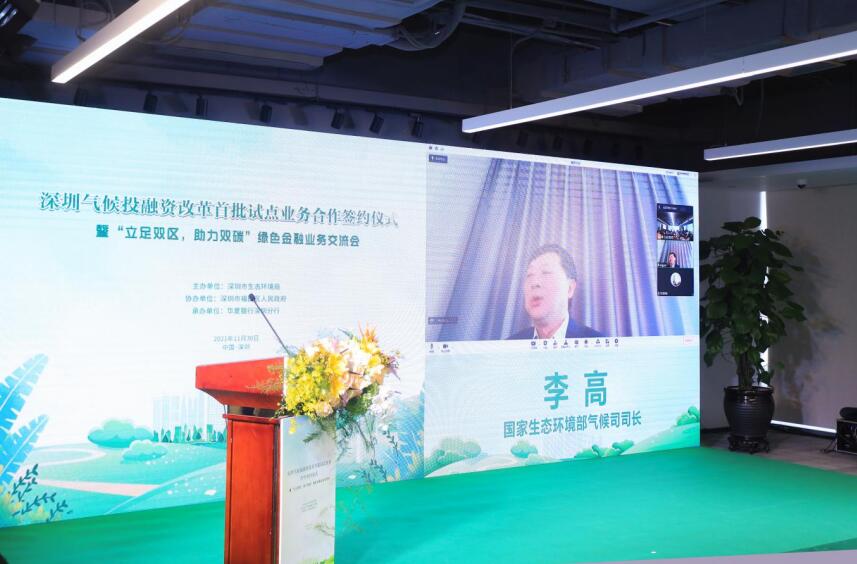 國家生態(tài)環(huán)境部氣候司司長李高,深圳市政府副秘書長劉昂,深圳市生態(tài)環(huán)境局局長李水生,深圳市委改革辦副主任孫華明,福田區(qū)政府副區(qū)長朱江,華夏銀行總行黨委委員、營銷總監(jiān)、深圳分行黨委書記、行長陳傳龍等領導出席。深圳市政府、深圳市生態(tài)環(huán)境局、市委改革辦、中國人民銀行深圳市中心支行、福田區(qū)政府相關負責人、深圳市綠色企業(yè)代表、深圳市綠色相關行業(yè)協(xié)會代表、華夏銀行深圳分行相關單位代表等70余人參加活動。