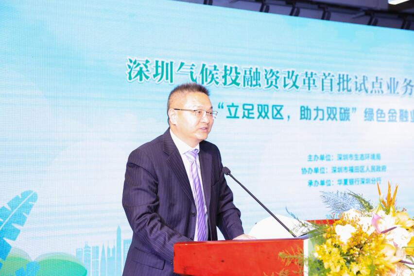 深圳市委改革辦副主任孫華明在致辭中指出,氣候投融資改革試點如期落地是深圳市落實“綠水青山就是金山銀山”高質量發(fā)展理念的一件大事,是生態(tài)環(huán)境部門和金融部門共同推進的綜合改革試點首批清單事項的一件喜事,也是有效市場和有為政府結合的一件盛世,對深圳市氣候投融資改革和首批試點業(yè)務合作達成表示熱烈祝賀。