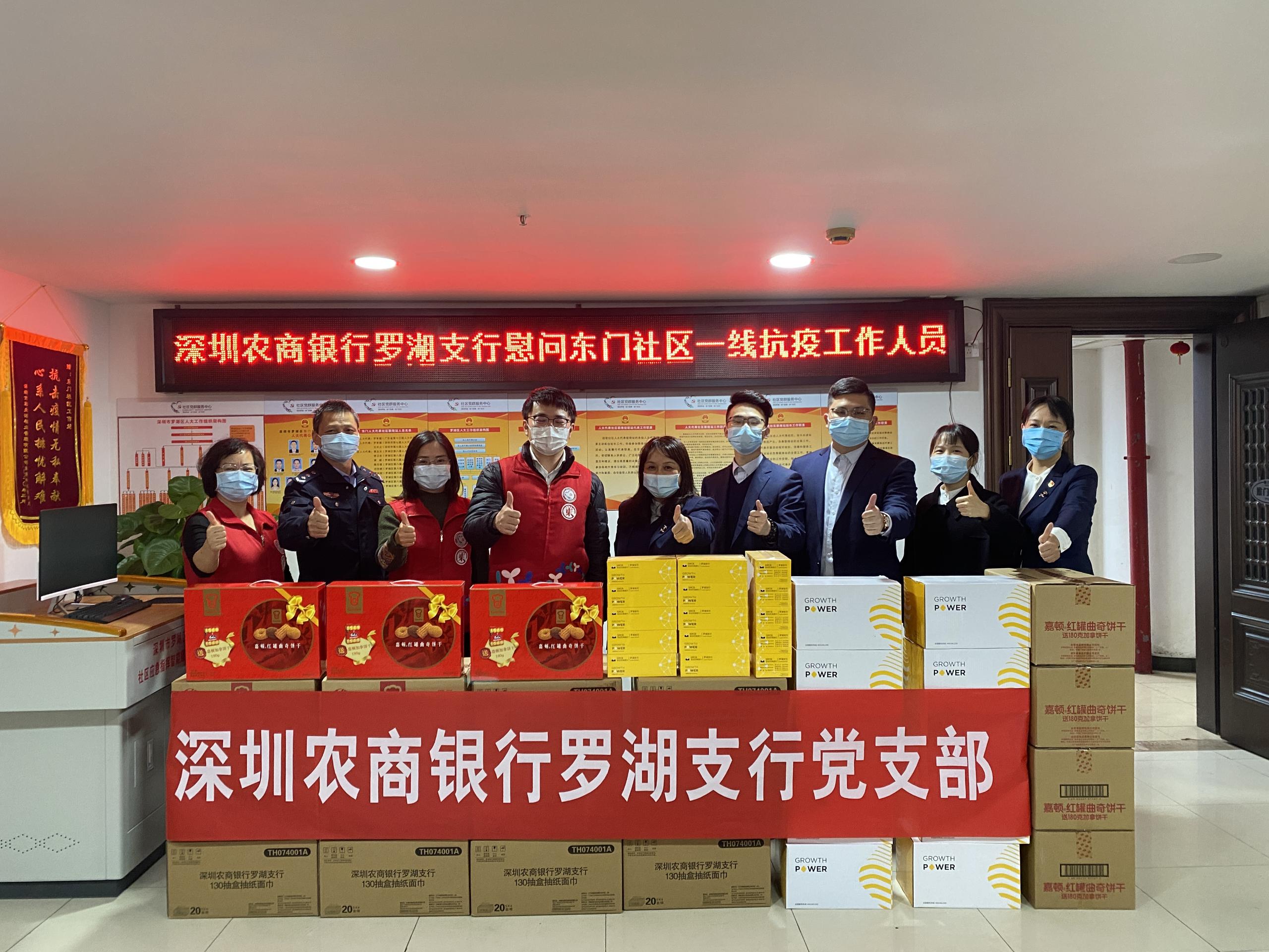 雖不能上前線抗疫,但作為羅湖區(qū)的本地金融企業(yè),在看到抗疫人員的辛苦付出后,深圳農(nóng)商銀行羅湖支行主動(dòng)發(fā)起“情暖疫線,羅湖加油”活動(dòng),轄下各網(wǎng)點(diǎn)員工在做好疫情防控前提下,為一線抗疫人員送上曲奇餅、紙巾、礦泉水等溫暖物資,慰問(wèn)抗疫人員,積極履行作為金融企業(yè)的社會(huì)責(zé)任。截至目前,活動(dòng)共覆蓋羅湖草埔東、蓮塘、黃貝嶺等八個(gè)社區(qū),并在繼續(xù)開(kāi)展中。