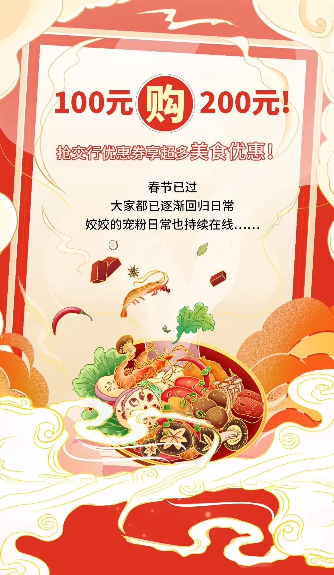 100元購(gòu)200元?搶交行優(yōu)惠券享超多美食優(yōu)惠!